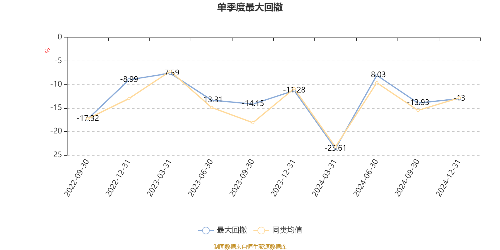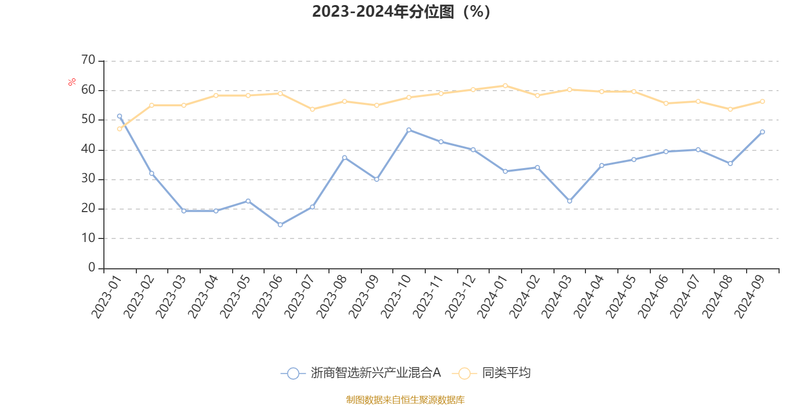 通过所选区间该基金净值增长率分位图,可以观察该基金与同类基金业绩比较情况。图为坐标原点到区间内某时点的净值增长率在同类基金中的分位数。