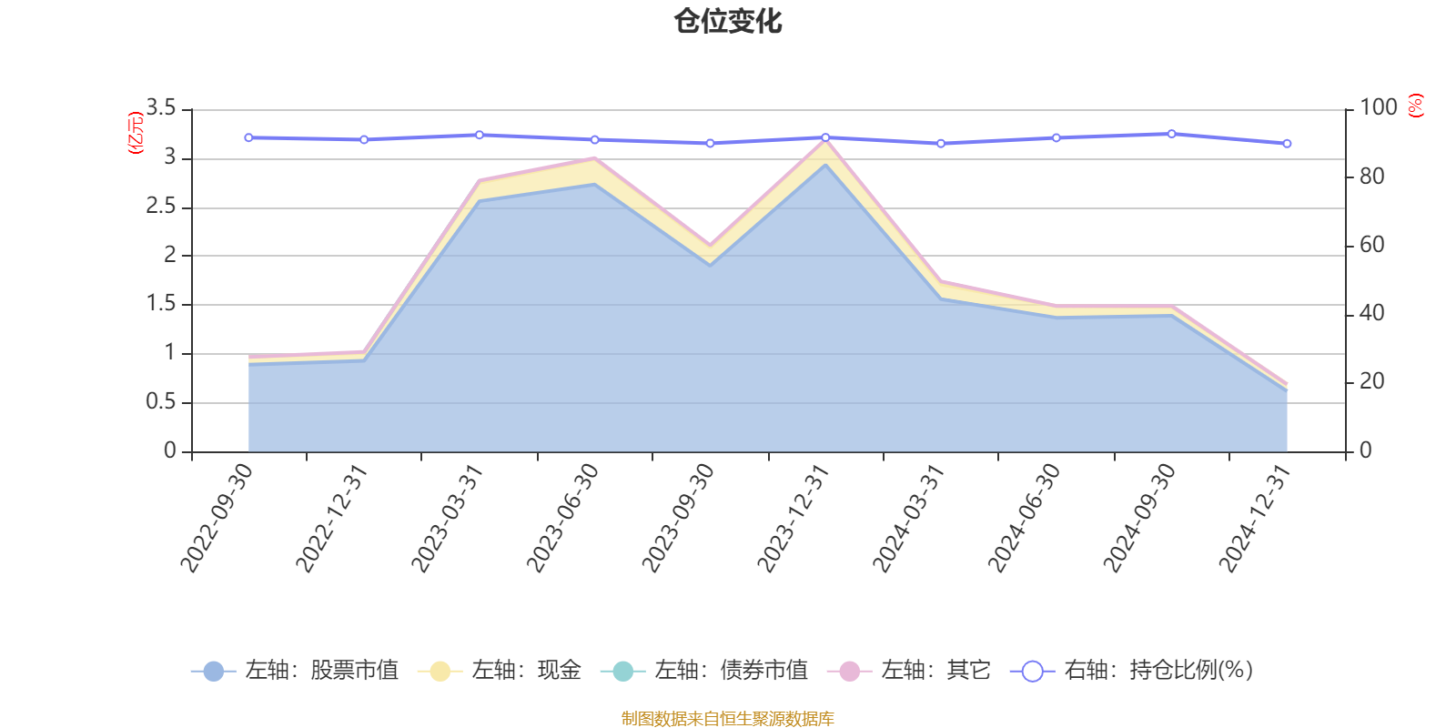 据定期报告数据统计,成立以来平均股票仓位为91.26%,同类平均为84.67%。2024年三季度末基金达到92.81%的最高仓位,2024年末最低,为89.97%。