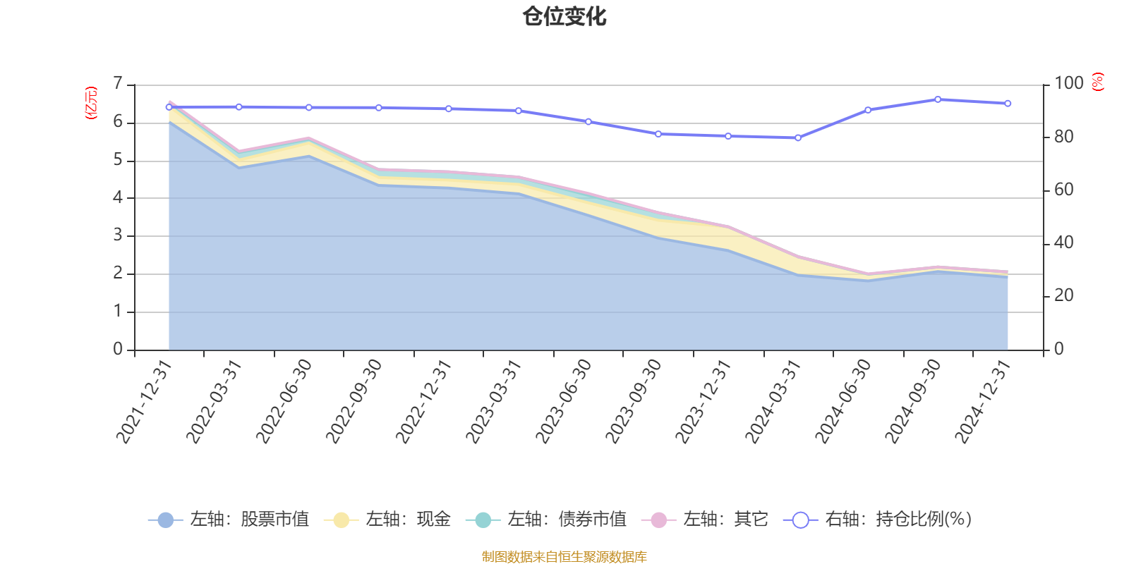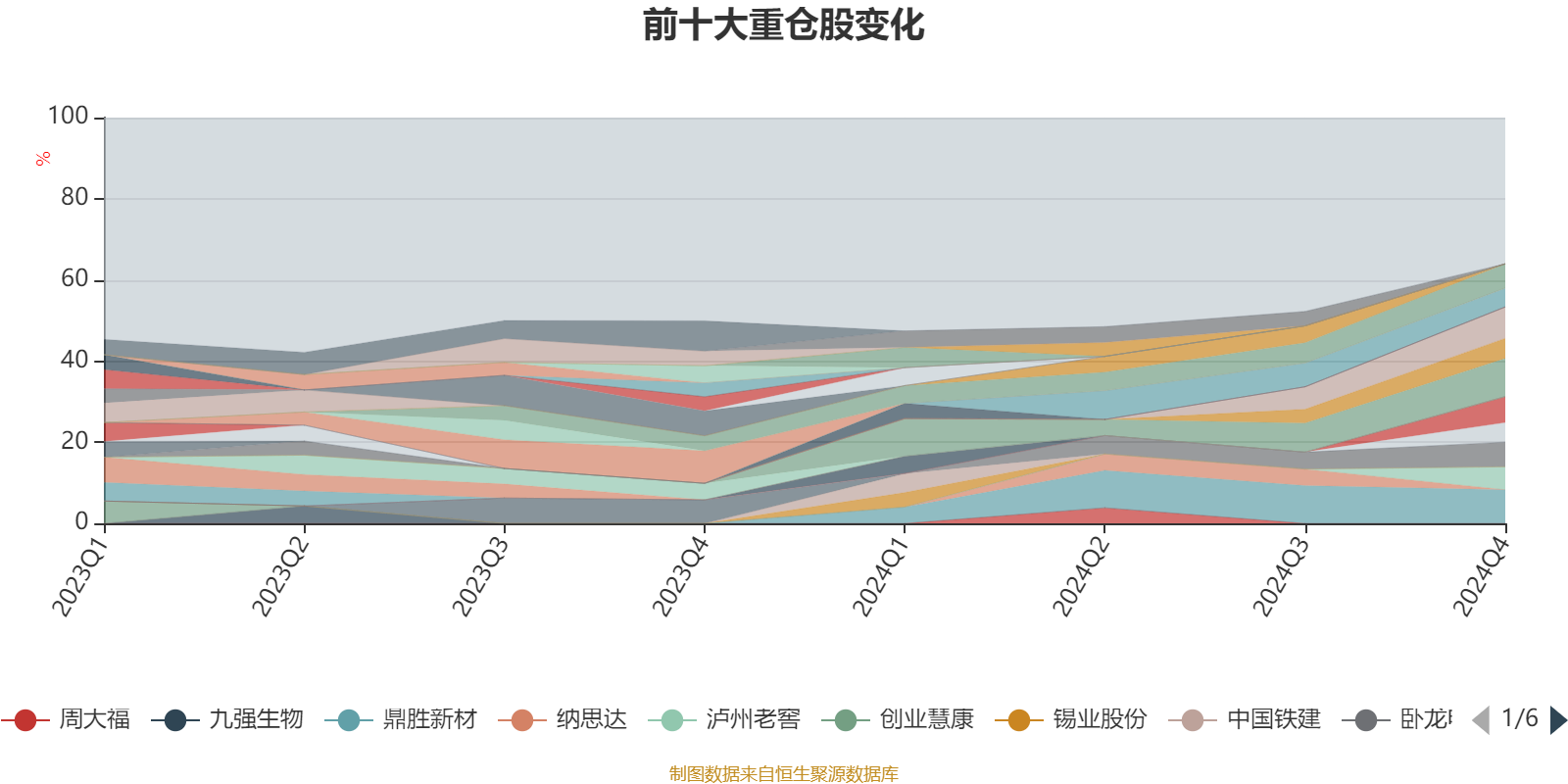 截至2024年四季度末,基金十大重仓股分别是蜀道装备、鼎胜新材、哔哩哔哩-W、五粮液、卧龙电驱、双环传动、泸州老窖、健友股份、中国移动、中海油田服务。