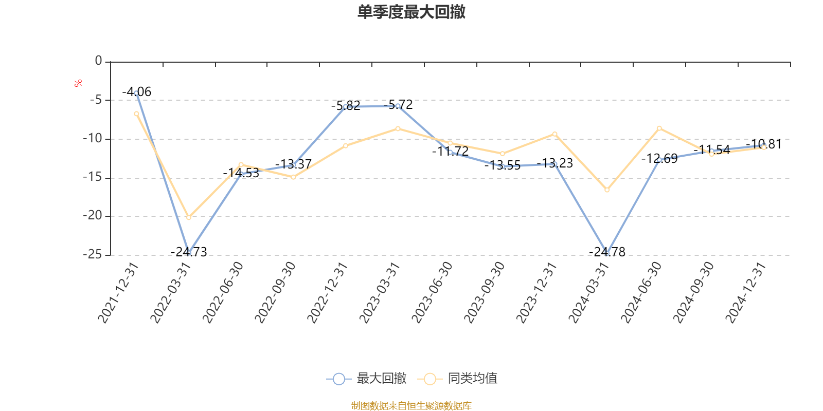 截至1月21日,基金近三年最大回撤为53.41%,同类可比基金排名54/443。其中,单季度最大回撤出现在2024年一季度,为24.78%。